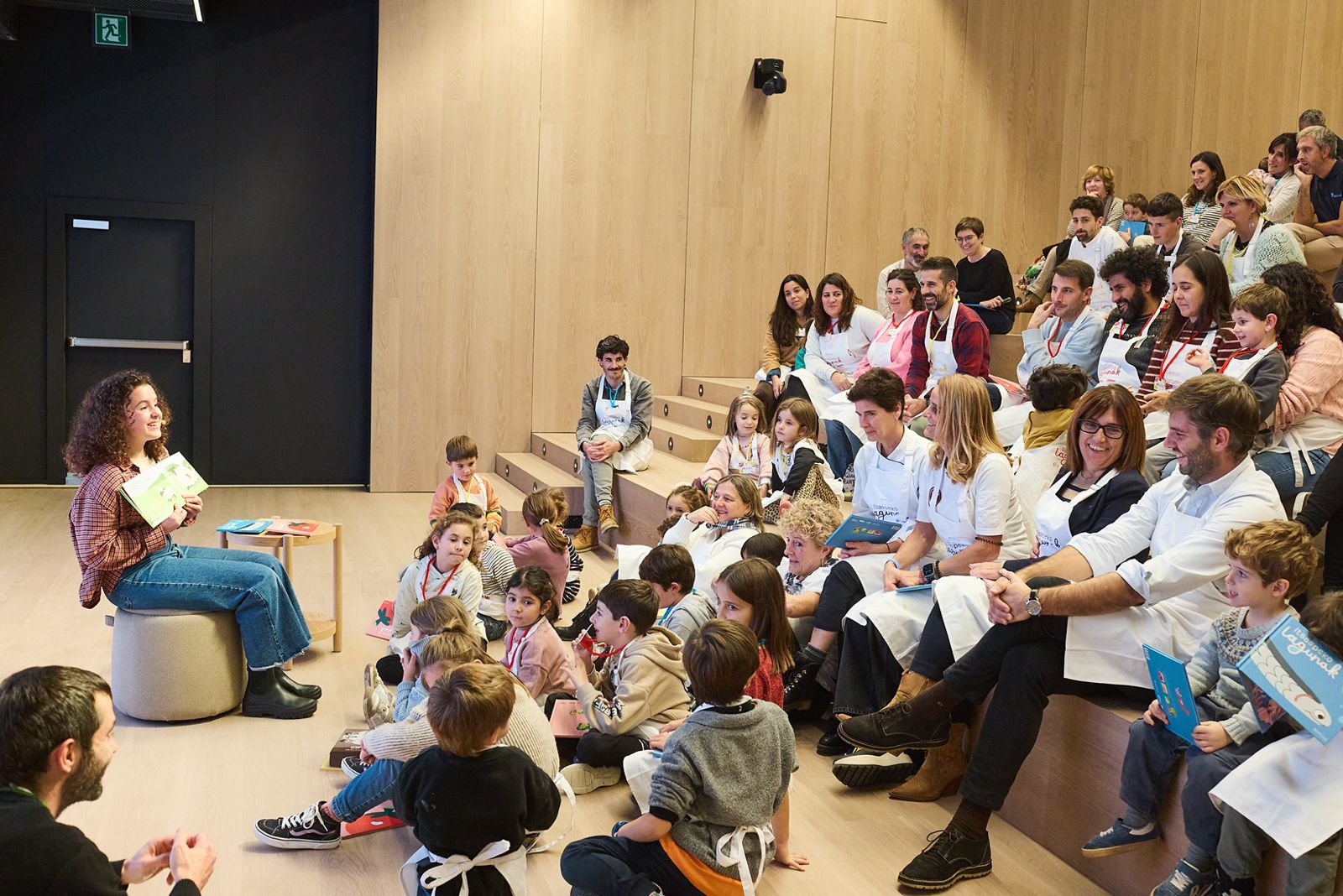 Cada taller ha trasladado a las familias a uno de los universos presentes en la colección. En el área de la huerta, Ane Zeberio (Arriatzu Barazkiak) y el cocinero Javi Rivero (AMA) han guiado a los asistentes a través de la temporalidad y diversidad de los vegetales. El espacio dedicado al mar ha contado con la experiencia de Lidia Olaizola (Kaia Kaipe), Pili Manterola (Iribar) y Marian, saregile, centrado en el trabajo vinculado a la pesca y a la reparación de redes. En el taller del enjambre, Inaxio Arin (Balerdipeko Erleak) y Armintz Gorrotxategi (Rafa Gorrotxategi) han mostrado cómo la labor de las abejas y la polinización se transforman finalmente en miel y dulces. Finalmente, en el ámbito de la granja, Ion Areitio (Mugarrieta Ganadutegia) y Beñat San Sebastian (Errioguarda Enea) han ofrecido una demostración sobre el cuidado del ganado y la construcción de una belarmeta. La actividad se ha completado con la elaboración de una receta sencilla en cada taller, en la que niños y familiares han colaborado junto a los cocineros participantes.
